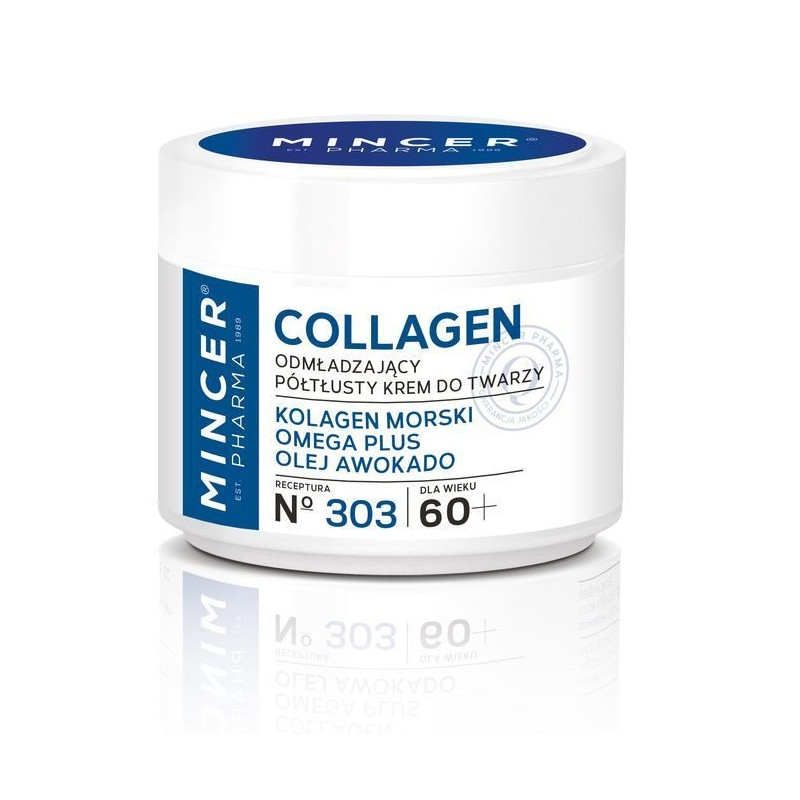 MINCER COLLAGEN NO 303 KREM DO TWARZY 50ML ODMŁADZAJĄCY PÓŁTŁUSTY idealna do codziennej pielęgnacji skóry dojrzałej.