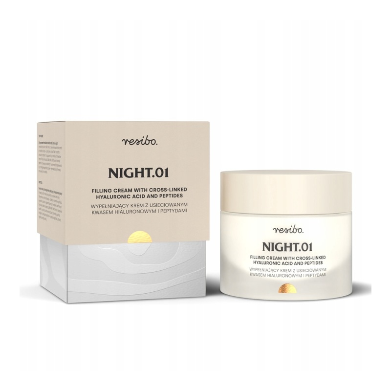 Resibo Night.01 to zaawansowany krem przeciwstarzeniowy na noc, który działa kompleksowo – regeneruje, nawilża, ujędrnia i wygładza skórę. Bogata formuła oparta na kwasie hialuronowym, peptydach i składnikach odżywczych sprawia, że jest idealnym produktem dla osób szukających realnych efektów przeciwstarzeniowych i głębokiej pielęgnacji nocnej.