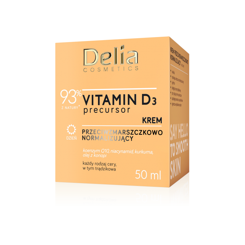 DELIA VITAMIN D3 PRECURSOR PRZECIWZMARSZCZKOWY KREM DO TWARZY NA DZIEŃ 50ML to potrójna moc działania.