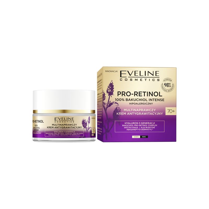 EVELINE PRO-RETINOL KREM DO TWARZY 70+ NA DZIEŃ I NOC 50ML redukuje zmarszczki i uelastycznia skórę.