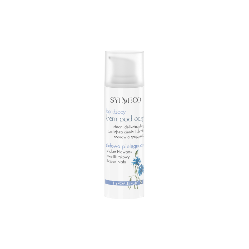 SYLVECO ŁAGODZĄCY KREM POD OCZY 30ML chaber bławatek i świetlik łąkowy to znane w medycynie ludowej rośliny o dobroczynnym działaniu na oczy.