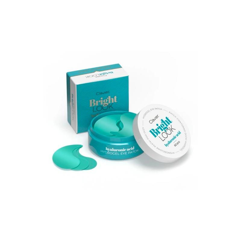 Hydrożelowe płatki pod oczy marki Clavier z serii Bright Look, wariant Hyaluronic Acid. W opakowaniu znajduje się wygodny zestaw 60 żelowych płatków, idealny do kompleksowej kuracji skóry wokół oczu