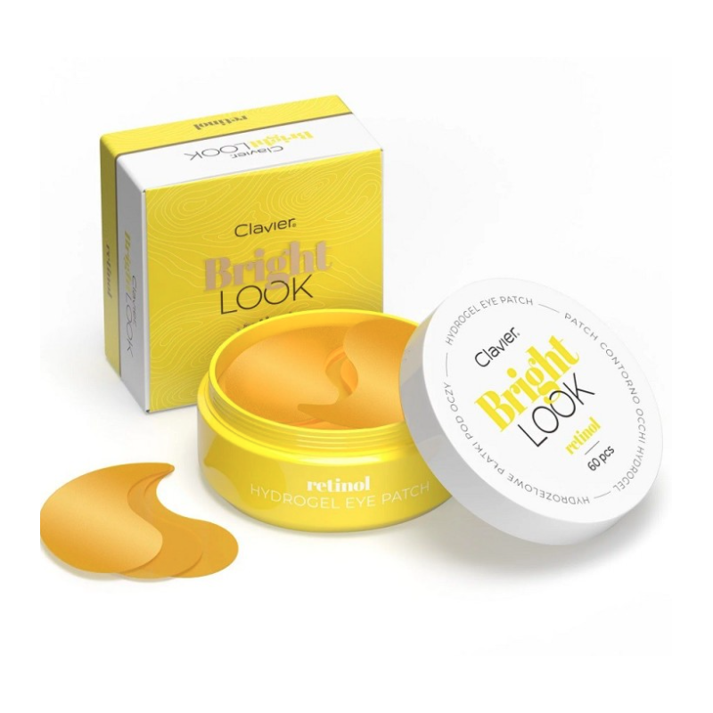 Hydrożelowe płatki pod oczy z linii Bright Look marki Clavier, wariant Retinol. Opakowanie zawiera 60 sztuk płatków, zaprojektowanych, by intensywnie ujędrniać i redukować zmarszczki w delikatnej okolicy oczu .