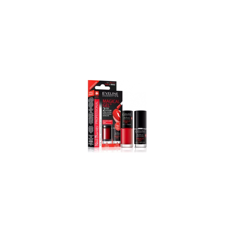 EVELINE MAGICAL GEL ZESTAW LAKIER DO PAZNOKCI RED 5ML I TOP COAT LAKIER 5ML