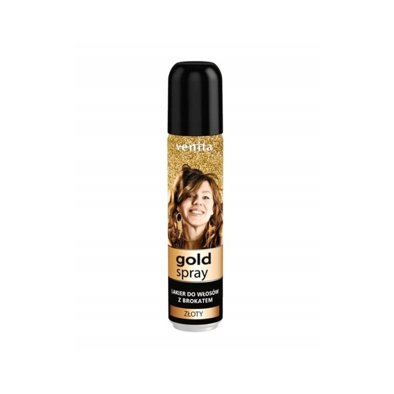 Venita Lakier do włosów z drobinkami – złoty 75 ml. Utrwalenie fryzury i efektowny złoty blask.