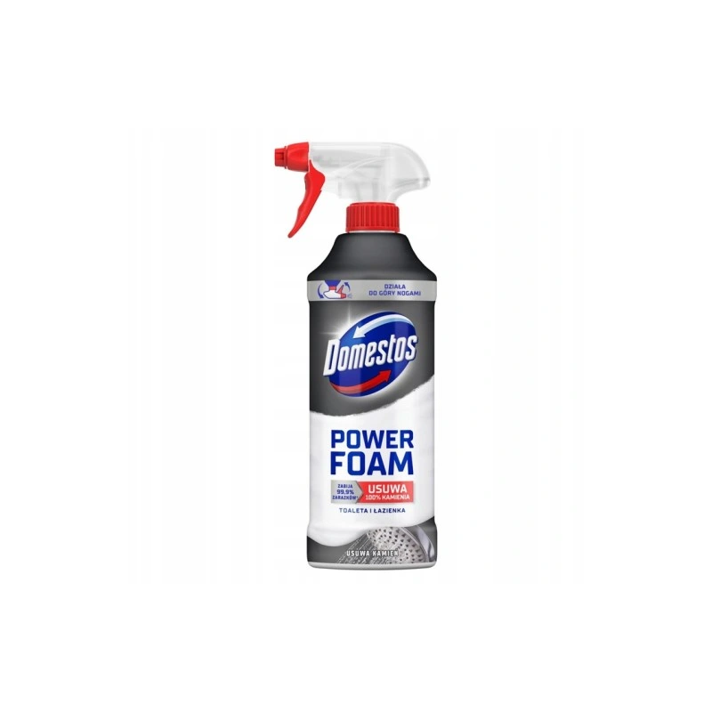 Domestos Power Foam Zero Kamienia to wydajna pianka do czyszczenia łazienki, która skutecznie usuwa kamień, zabrudzenia oraz eliminuje bakterie i wirusy. Dzięki wygodnemu aplikatorowi umożliwia rozpylanie produktu nawet do góry nogami, co pozwala dotrzeć do trudno dostępnych miejsc – np. pod krawędzią muszli klozetowej.