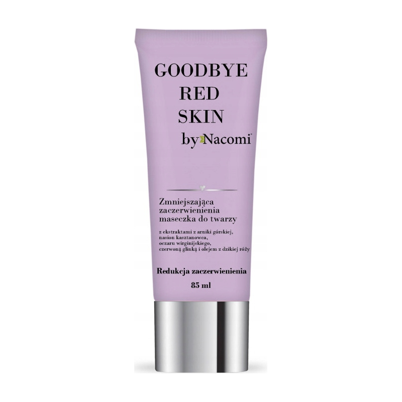 SAY BYE TO RED SKIN marki Nacomi. Maseczka do twarzy. W prosty i skuteczny sposób pomoże w pozbyciu się problemu z zaczerwienioną, nieestetycznie wyglądającą cerą. Dodatkowo ma działanie łagodzące podrażnienia, pobudzające mikrokrążenie oraz rozjaśniające. Po zastosowaniu widoczne pajączki i naczynka zostają zredukowane, zaś skóra staje się promienna i pełna blasku. Produkt dostępny w poręcznej tubce.