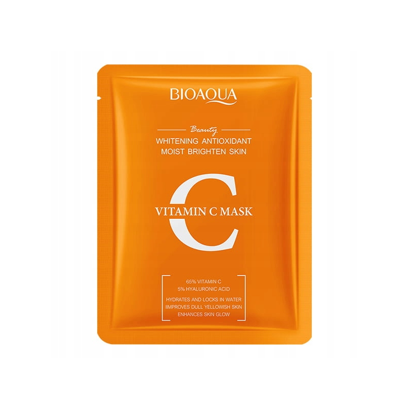 Bioaqua Vitamin C to intensywnie działająca maseczka w płachcie z witaminą C, stworzona, by rozświetlić cerę, dostarczyć jej głębokiego nawilżenia i ochronić przed szkodliwym wpływem wolnych rodników. Formuła pomaga przywrócić skórze blask, wyrównać koloryt i poczuć świeżość już po jednym użyciu. Produkt odpowiedni dla każdego typu skóry, zwłaszcza zmęczonej, szarej i pozbawionej blasku.