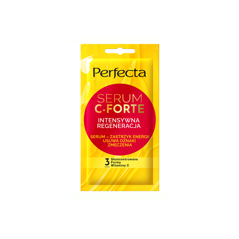 Intensywnie regenerująca maseczka‑serum Perfecta Serum C‑Forte – rozświetlenie, nawilżenie i poprawa jędrności skóry twarzy, szyi i dekoltu.