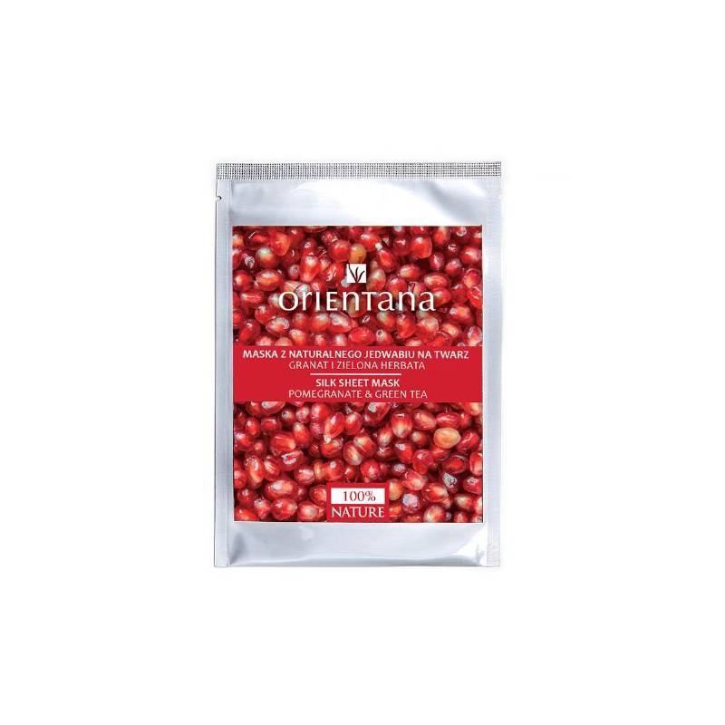 ORIENTANA MASKA DO TWARZY GRANAT I ZIELONA HERBATA do cery normalnej, wykonana z naturalnego jedwabiu.