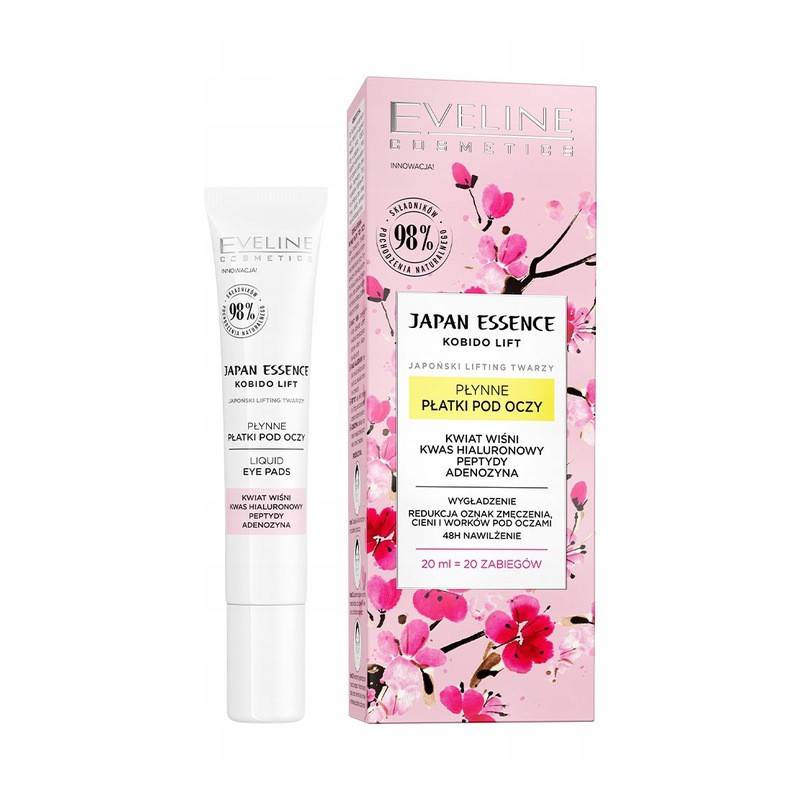 EVELINE JAPAN ESSENCE PŁYNNE PŁATKI POD OCZY 20ML zredukuje cienie i drobne zmarszczki.