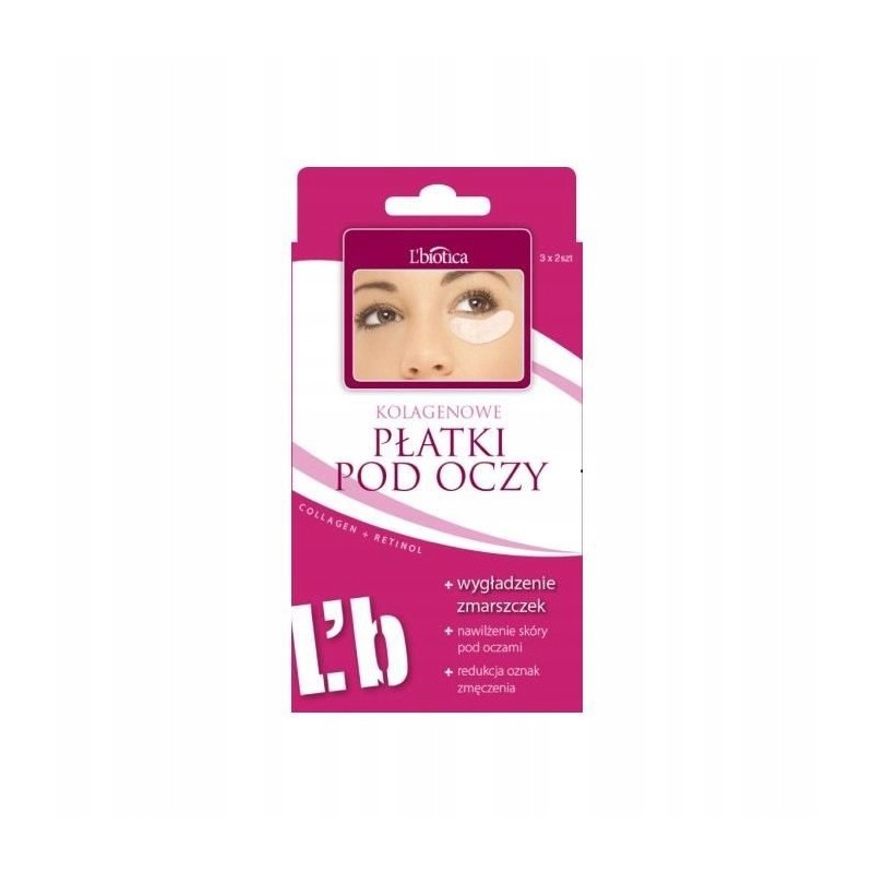 LBIOTICA KOLAGENOWE PŁATKI POD OCZY PRZECIWZMARSZCZKOWE 3SZTUKI wygładzają zmarszczki.