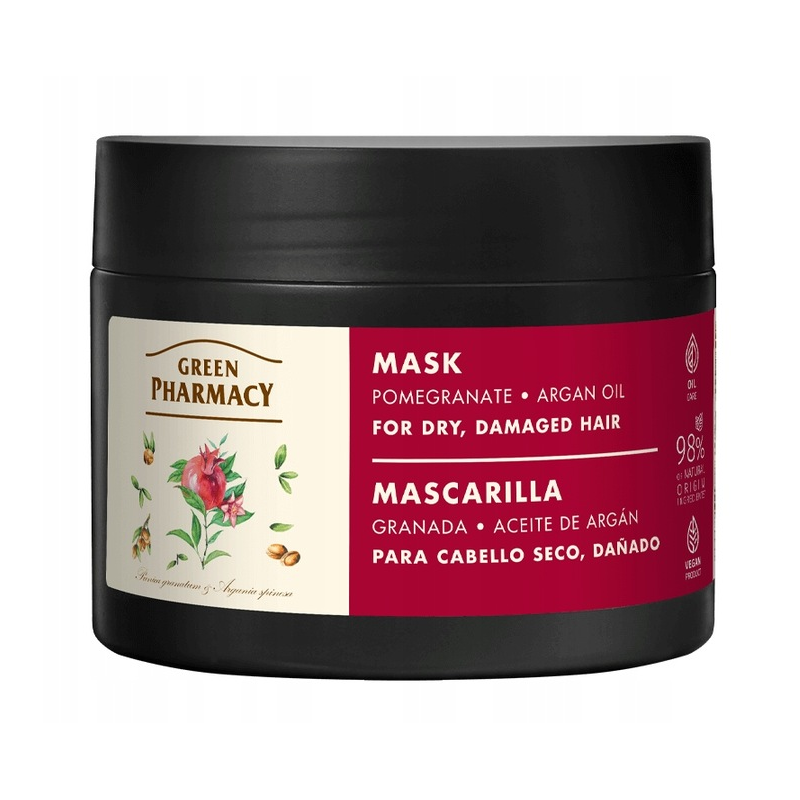 GREEN PHARMACY MASKA DO WŁOSÓW 300ML GRANAT I OLEJ ARGANOWY redukuje łamanie i uszkodzenia.