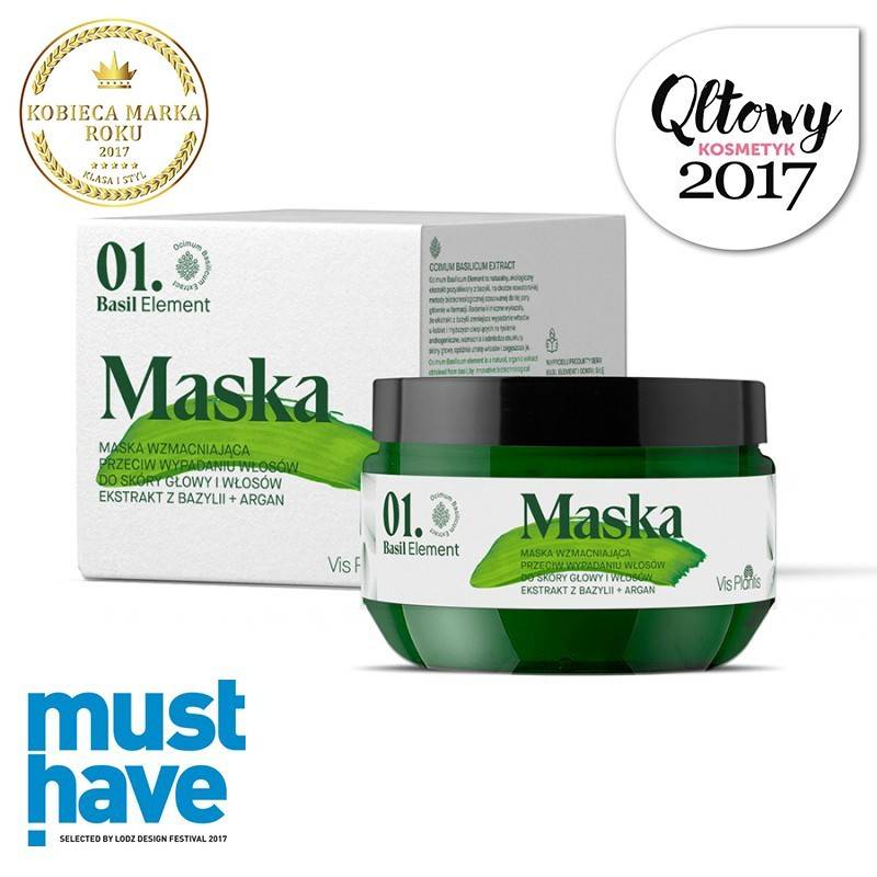 BASIL ELEMENT. MASKA WZMACNIAJĄCA PRZECIW WYPADANIU WŁOSÓW 200ML zamyka łuski włosowe przeciwdziałając rozdwajaniu się końcówek.