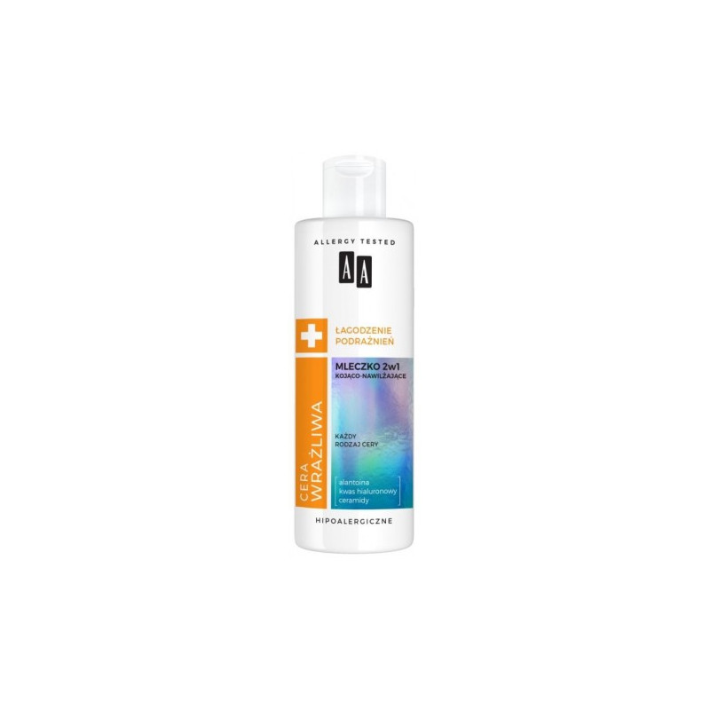 AA CERA WRAŻLIWA MLECZKO DO TWARZY 2W1 200ML KOJĄCO-NAWILŻAJĄCE to skuteczne rozwiązanie do oczyszczania i demakijażu o pielęgnacyjnych walorach odpowiednich dla cery wrażliwej.