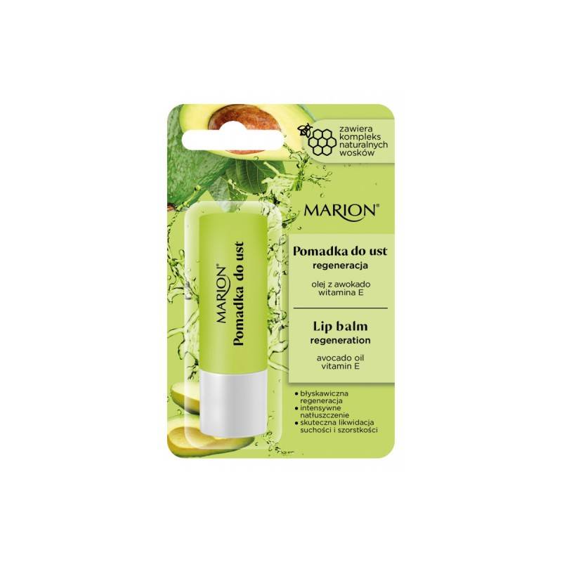 MARION POMADKA DO UST REGENERUJĄCA OLEJ AWOKADO przeciwdziała podrażnieniom i przyspiesza regenerację popękanego naskórka.