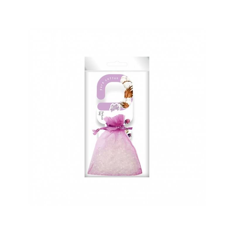 Uniwersalna zawieszka w postaci delikatnych kryształków nasączonych aromatycznym ekstraktem, zamkniętych w kolorowym woreczku z organzy. Woreczek zapachowy jest produktem z oferty produkcyjnej firmy Ravi przeznaczonym do stosowania jako odświeżacz do damskich torebek, plecaków, szaf, szuflad oraz garderoby. Pure Cotton to uroczy, lekki zapach będący kwintesencją czystości i świeżości.