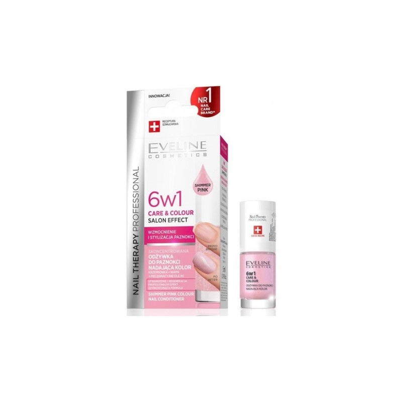 EVELINE NAIL THERAPY PROFESSIONAL 6W1 CARE & COLOUR ODŻYWKA DO PAZNOKCI 5ML SHIMMER PINK NADAJĄCA KOLOR