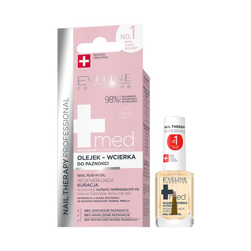 EVELINE MED+ OLEJEK-WCIERKA DO PAZNOKCI 12ML poprawi ich kondycję, zregeneruje oraz utwardzi i nawilży płytkę.