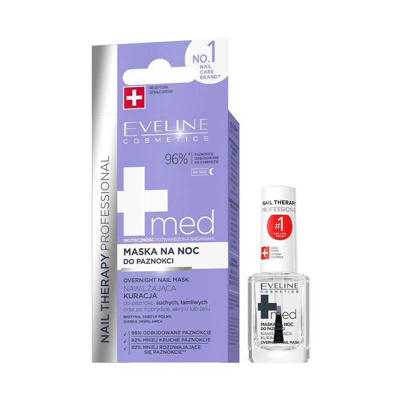 EVELINE MED+ MASKA NA NOC ODŻYWKA DO PAZNOKCI 12ML skoncentrowane serum do paznokci zniszczonych.
