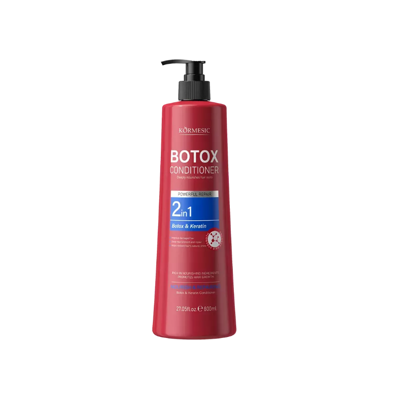 KORMESIC Professional Odżywcza i Naprawcza Odżywka do Włosów Botox & Keratin 2w1 800 ml to kompleksowa kuracja, która nawilża, regeneruje, wygładza i wzmacnia włosy, przywracając im zdrowy wygląd, miękkość i blask. Idealna dla włosów suchych, matowych i osłabionych, które potrzebują intensywnej, profesjonalnej pielęgnacji.