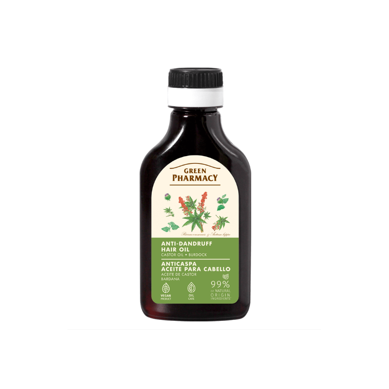 Olejek przeciwłupieżowy Green Pharmacy 100 ml z olejem rycynowym i łopianem – naturalna pielęgnacja skóry głowy i redukcja łupieżu.