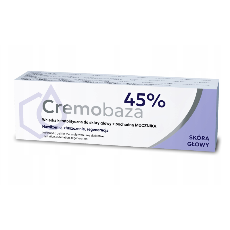 Cremobaza 45% to wcierka do skóry głowy o działaniu regeneracyjnym i nawilżającym. Preparat został opracowany z wysoką zawartością mocznika (45%), co zapewnia skórze komfort, elastyczność i zdrowy wygląd. Wcierka pomaga złuszczać martwy naskórek, nawilżać skórę głowy oraz wspierać jej regenerację, co przy regularnym stosowaniu redukuje łuszczenie, suchość i poprawia ogólną kondycję włosów. Produkt odpowiedni do wszystkich typów skóry głowy wymagających odnowy i ukojenia.