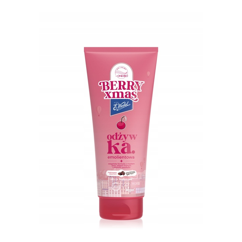 OnlyBio Xmas – Odżywka emolientowa o zapachu Pawełek Wiśniowy 200 ml to bogata odżywka, która intensywnie pielęgnuje suche i zniszczone włosy, wzmacnia ich strukturę oraz poprawia gładkość i elastyczność. Formuła oparta na emolientach doskonale wygładza włosy, zapobiega puszeniu się pasm oraz ułatwia ich rozczesywanie i stylizację. Produkt został stworzony z myślą o codziennej pielęgnacji włosów wymagających odżywienia i ukojenia, a przyjemny aromat inspirowany kultowym batonikiem Pawełek Wiśniowy wzbogaca rytuał pielęgnacyjny. Odżywka emolientowa działa uzupełniająco po umyciu włosów, wspierając ich naturalną barierę ochronną i poprawiając ogólną kondycję pasm.