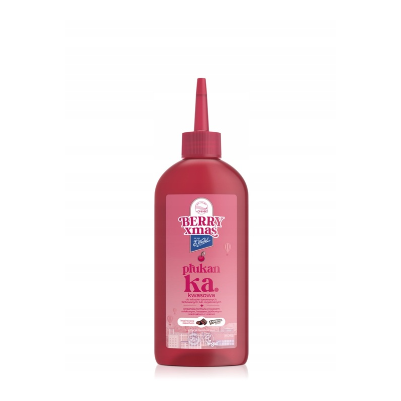 OnlyBio – Płukanka kwasowa inspirowana zapachem Pawełek Wiśniowy 300 ml Xmas to lekka, odżywcza płukanka do włosów, która równoważy ich pH, domyka łuski włosa i wygładza pasma po myciu. Produkt jest idealny do włosów wymagających miękkości, blasku i łatwości w rozczesywaniu. Formuła została wzbogacona o składniki pielęgnujące, które wzmacniają strukturę włosa, zmniejszają puszenie i poprawiają ogólny wygląd pasm. Przyjemny aromat inspirowany klasycznym smakiem Pawełka Wiśniowego sprawia, że pielęgnacja włosów staje się jeszcze bardziej przyjemna. Płukanka doskonale sprawdza się jako element po myciu włosów, zwłaszcza wrażliwych na zmianę pH lub potrzebujących domknięcia łusek.