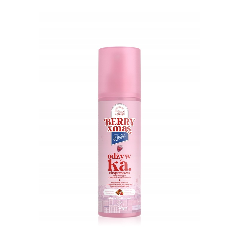 Ekspresowa odżywka wygładzająca w sprayu Berry Xmas OnlyBio x Wedel 200 ml to lekka, pielęgnująca formuła w wygodnej atomizerze, stworzona by szybko wygładzić włosy, ułatwić rozczesywanie i dodać im blasku bez obciążania. Dzięki połączeniu naturalnych ekstraktów i składników pielęgnujących odżywka działa nawilżająco, wzmacnia włosy, redukuje puszenie i łagodzi szorstkość. Produkt idealnie sprawdza się jako etap pielęgnacji po myciu, przed stylizacją lub do codziennej pielęgnacji włosów suchych, zniszczonych i trudnych w układaniu. Spray ma przyjemny, owocowo‑świąteczny zapach, który umila aplikację i pozostawia włosy świeże i pachnące. Produkt jest odpowiedni do każdego rodzaju włosów, szczególnie tych potrzebujących wygładzenia, miękkości i efektu zdrowego wyglądu.