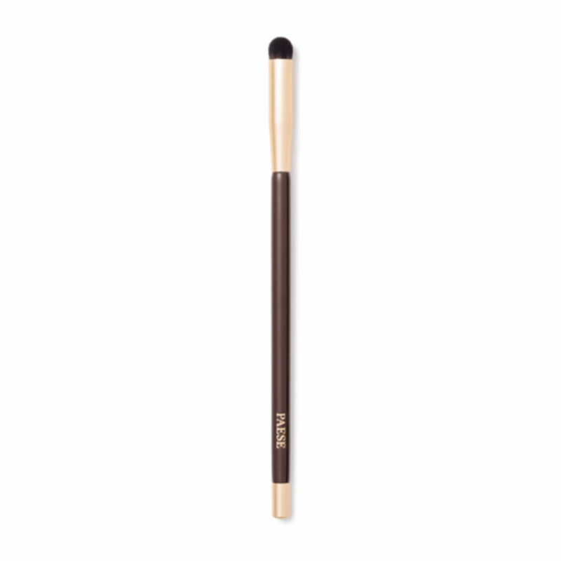 Profesjonalny pędzel przeznaczony do blendowania cieni. Doskonale sprawdza się przy pracy z produktami prasowanymi, sypkimi i płynnymi. Delikatnie zaokrąglona końcówka pozwala na precyzyjne cieniowanie i uzyskanie płynnych przejść między kolorami. Włosie syntetyczne zapewnia komfort aplikacji i łatwość w utrzymaniu czystości. Drewniana rączka ze złotym logo nadaje mu elegancki wygląd i zapewnia wygodny chwyt.