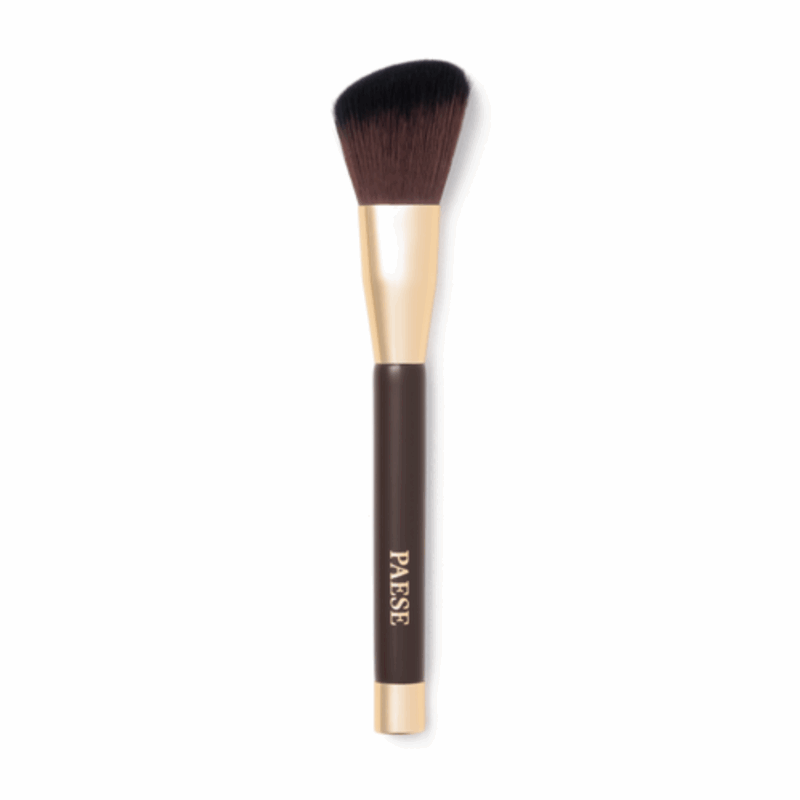PAESE PĘDZEL DO RÓŻU I BRONZERA 02F PRECYZYJNA APLIKACJA skośna końcówka pozwala na precyzyjną aplikację różu na policzki i bronzera wzdłuż kości policzkowych, linii szczęki czy czoła.