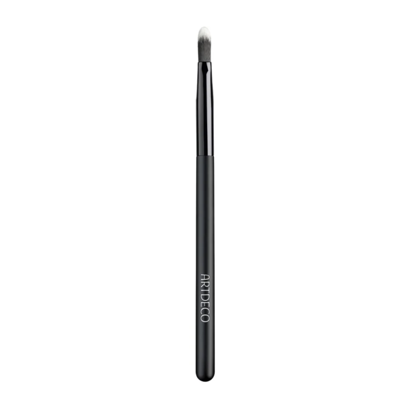 Pędzel jest uniwersalny – sprawdzi się do cieni do powiek, korektora, eyelinerów, a także produktów kremowych i płynnych.