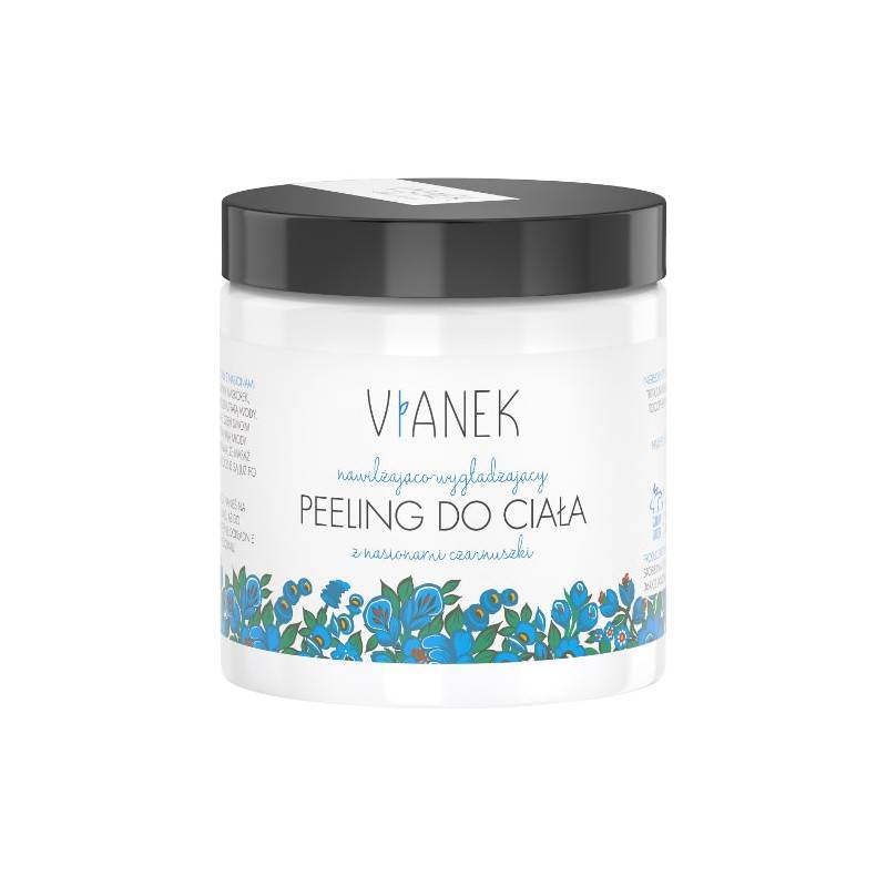 VIANEK NAWILŻAJĄCO-WYGŁADZAJĄCY PEELING DO CIAŁA 150ML do ciała z nasionami czarnuszki oraz cukrem, złuszcza martwy naskórek, wzmacnia skórę.