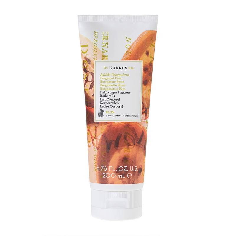 KORRES mleczko do ciała o zapachu Bergamotki i Gruszki zawiera ponad 92% składników naturalnych. Mleczko do ciała Korres to mieszanka kwiatu bergamotki i słodkiej gruszki.