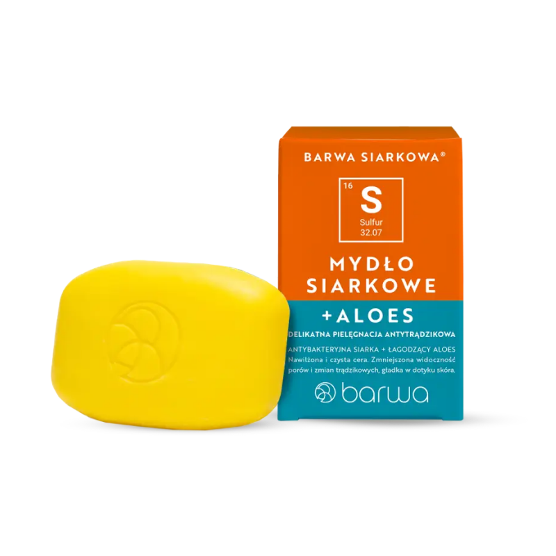 Antytrądzikowe mydło siarkowe z aloesem – oczyszcza skórę, redukuje sebum, łagodzi podrażnienia i zmniejsza widoczność porów.