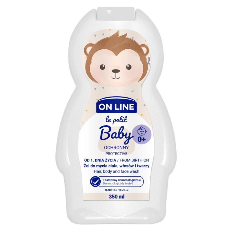 On Line Le Petit Baby ochronny żel 3w1 to delikatny produkt przeznaczony do kompleksowego mycia twarzy, ciała i włosów dzieci już od pierwszego dnia życia. Formuła żelu została opracowana tak, aby skutecznie oczyszczać, chronić wrażliwą skórę oraz wspierać jej naturalną barierę ochronną. Produkt nie szczypie w oczy i pozostawia skórę miękką, nawilżoną i komfortową po kąpieli. Dzięki uniwersalnemu zastosowaniu żel ułatwia codzienną pielęgnację najmłodszych.
