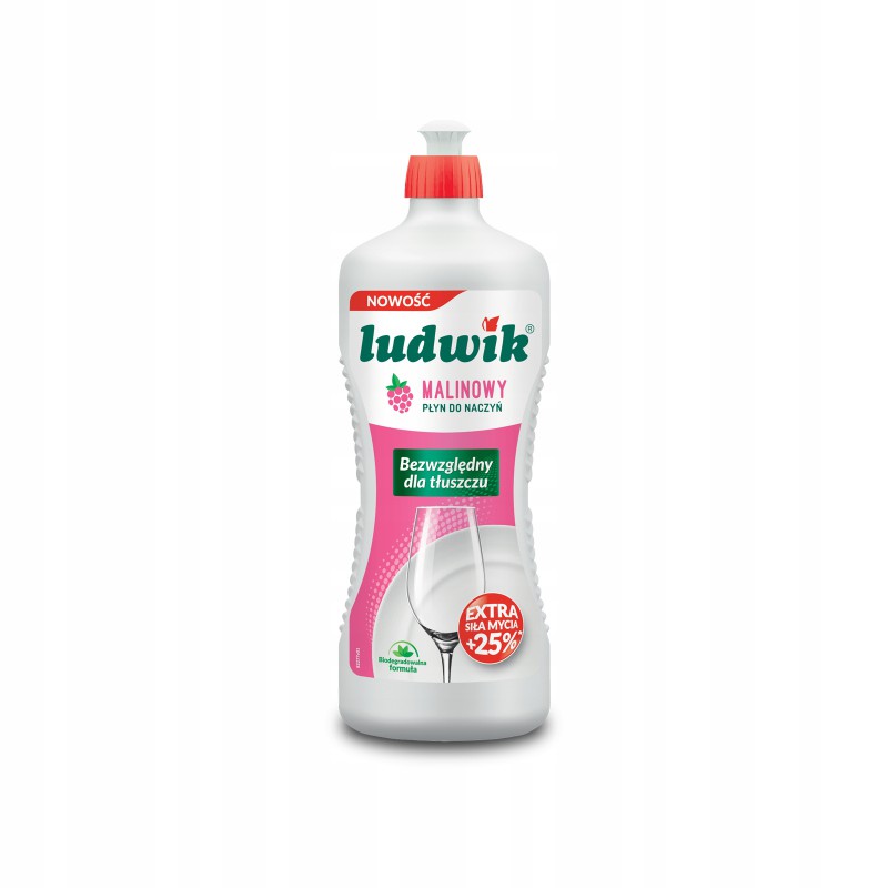 LUDWIK PŁYN DO MYCIA NACZYŃ 900G MALINA z nową, bardziej skuteczną formułą myjącą zapewnia czyste i lśniące naczynia.