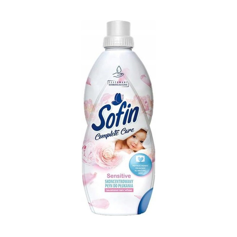 SOFIN COMPLETE CARE SKONCENTROWANY PŁYN DO PŁUKANIA 1L SENSITIVE odświeża praną odzież.