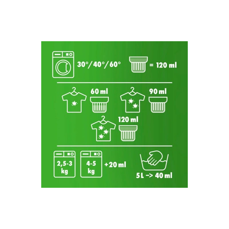 Skuteczność w usuwaniu plam: Formuła płynu skutecznie usuwa zabrudzenia, zachowując świeżość ubrań.