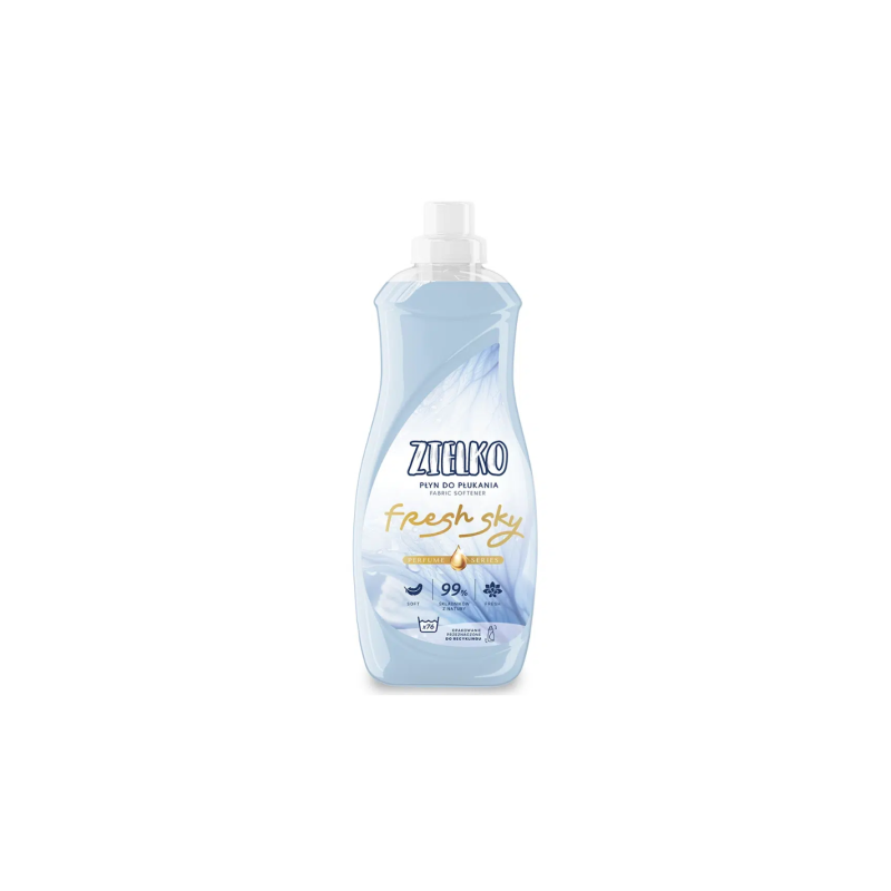 ZIELKO PŁYN DO PŁUKANIA TKANIN 1520ML FRESH SKY otula tkaniny delikatnym zapachem, zapewniając długotrwałą świeżość i miękkość.