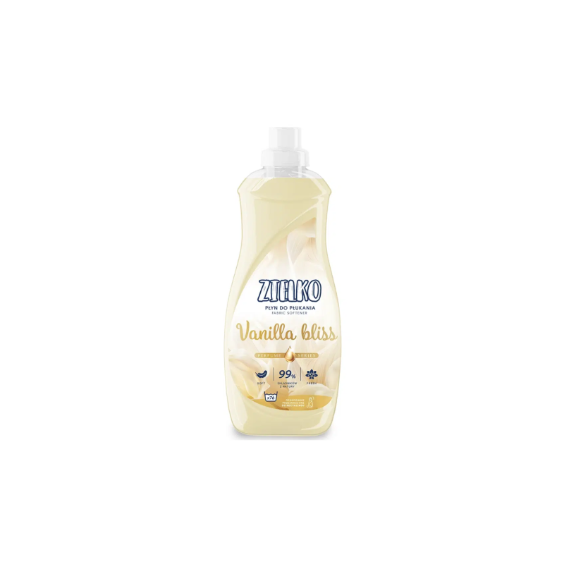 ZIELKO PŁYN DO PŁUKANIA TKANIN 1520ML VANILLA BLISS otula tkaniny delikatnym zapachem, zapewniając długotrwałą świeżość i miękkość.