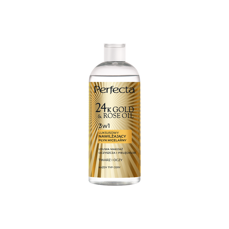 PERFECTA 24K GOLD ROSE OIL PŁYN MICELARNY 400ML NAWILŻAJĄCY zwiększa poziom nawilżenia oraz przyspiesza regenerację skóry.
