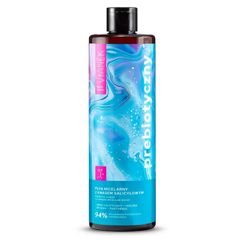 VIANEK PREBIOTYCZNY PŁYN MICERALNY 400ML Z KWASEM SALICYLOWYM do codziennego demakijażu cery tłustej i mieszanej.