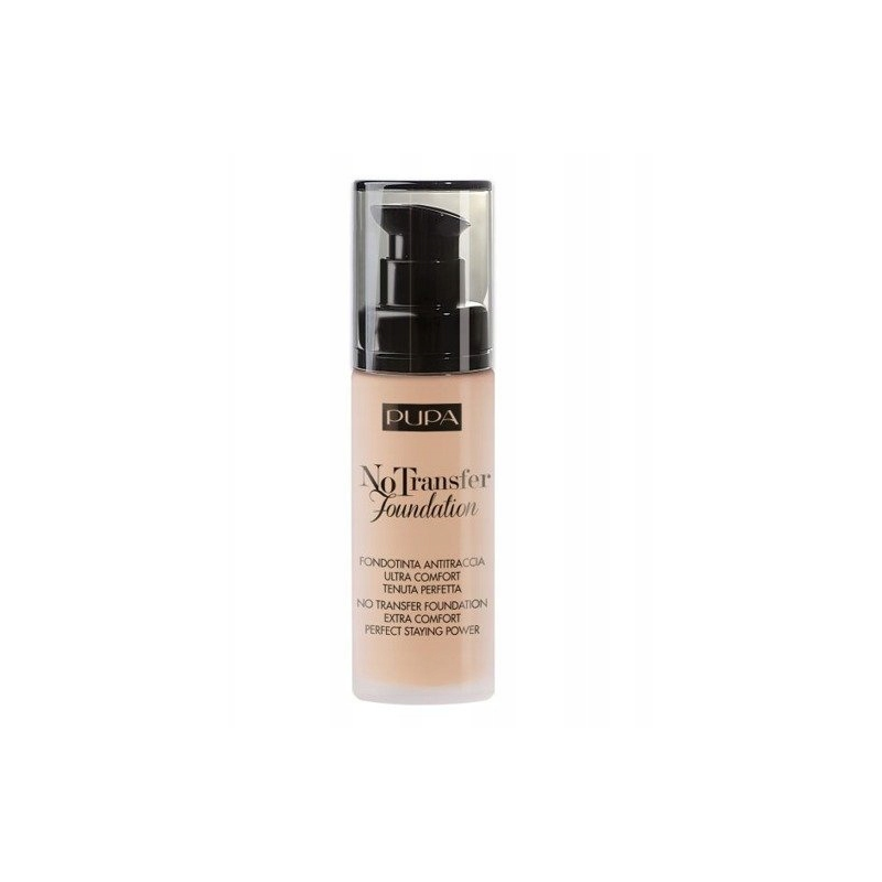 PUPA NO TRANSFER FOUNDATION PODKŁAD DO TWARZY 30ML SPF15 01 NUDE nie ściera się i nie zostawia śladów.