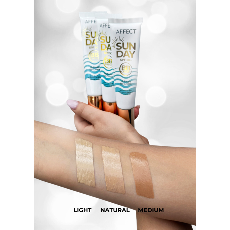 Affect Sunday to wielofunkcyjny krem BB o wysokiej ochronie przeciwsłonecznej SPF 50. Łączy właściwości pielęgnacyjne z makijażem, zapewniając ochronę przed szkodliwym promieniowaniem UV, równomierne krycie niedoskonałości skóry oraz nawilżenie. Krem doskonale sprawdza się jako baza pod makijaż lub samodzielny produkt dla naturalnego efektu.