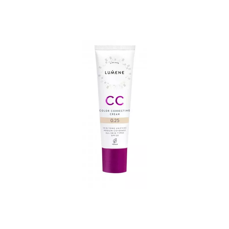 Lumene CC Color Correcting Cream SPF‑20 30 ml to wielofunkcyjny krem‑podkład typu CC, łączący funkcje podkładu, korektora, bazy i kremu koloryzującego. Natychmiast wyrównuje koloryt skóry, redukuje zaczerwienienia i nadaje cerze zdrowy, promienny wygląd. Lekka, kremowa konsystencja zapewnia średnie krycie, dzięki czemu skóra wygląda świeżo i naturalnie, bez efektu maski. Produkt jest odpowiedni do różnych typów skóry.