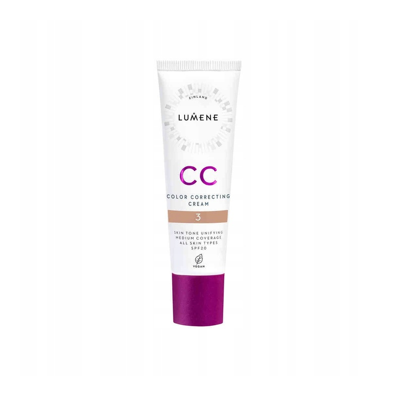 Lumene CC Color Correcting Cream 7w1 30 ml to lekki krem‑podkład typu CC, który łączy funkcje kilku produktów w jednym: podkładu, korektora, bazy pod makijaż i kremu wyrównującego koloryt. Formuła z ekstraktem z borówki brusznicy i arktyczną wodą źródlaną redukuje zaczerwienienia, wyrównuje koloryt skóry i nadaje cerze zdrowy, promienny wygląd. Podkład zawiera filtr SPF 20, zapewniający ochronę przed promieniowaniem słonecznym. Nadaje się do wszystkich typów skóry i zapewnia średnie krycie bez efektu obciążenia.