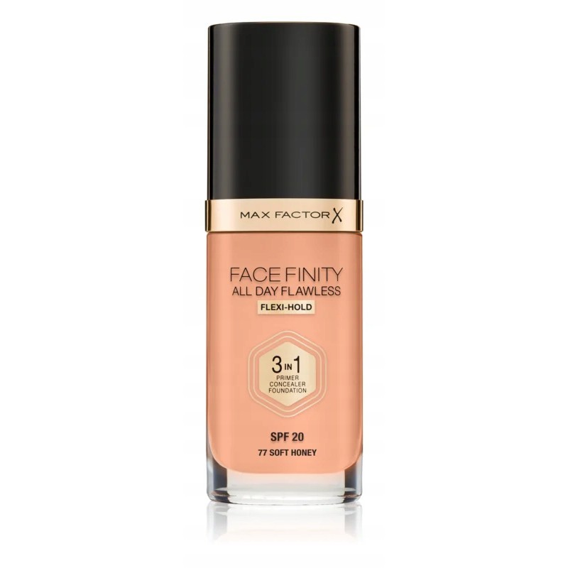 MAX FACTOR FACEFINITY 3IN1 ALL DAY FLAWLESS PODKŁAD DO TWARZY 30ML 77 utrzymuje się na skórze przez cały dzień.