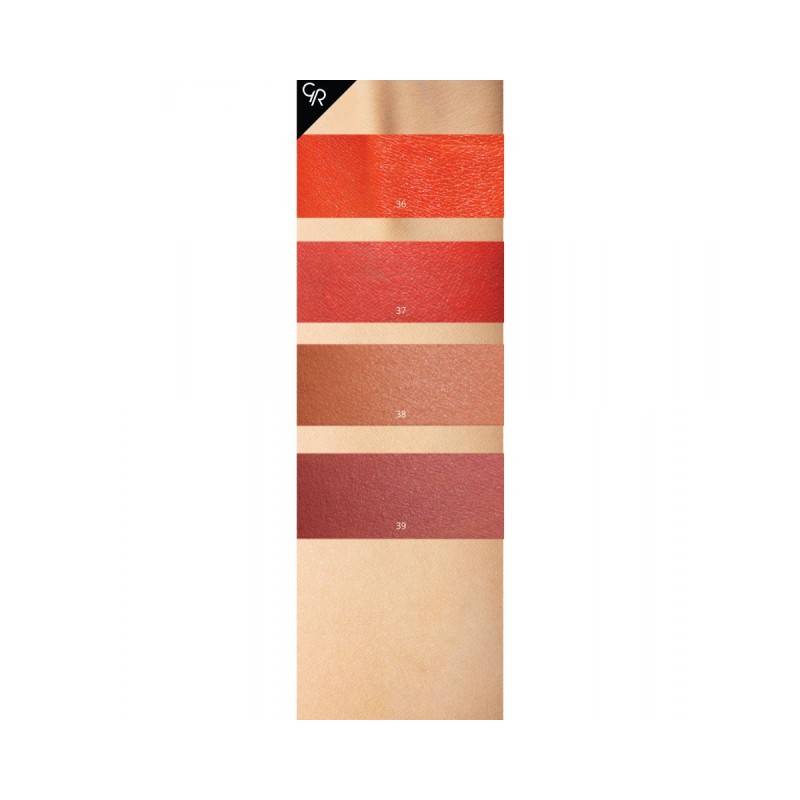 Golden Rose Velvet Matte -Matowa Pomadka Do Ust 38 dzięki wysokiej zawartości pigmentów długo utrzymuję się na ustach ,dodatkowo idealnie się rozprowadza.